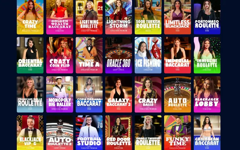 Sie können Klassiker wie Blackjack, Roulette und Baccarat sowie moderne Gameshows genießen.